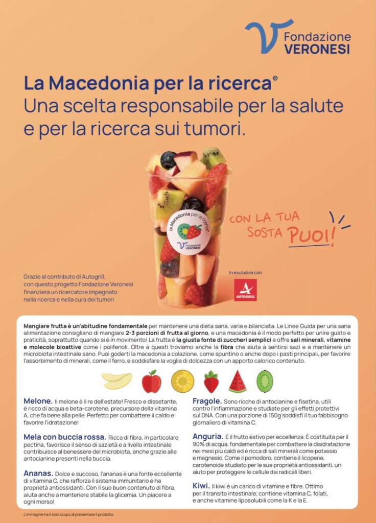 Al via la quarta edizione de la macedonia per la ricerca® con fondazione umberto veronesi e autogrill