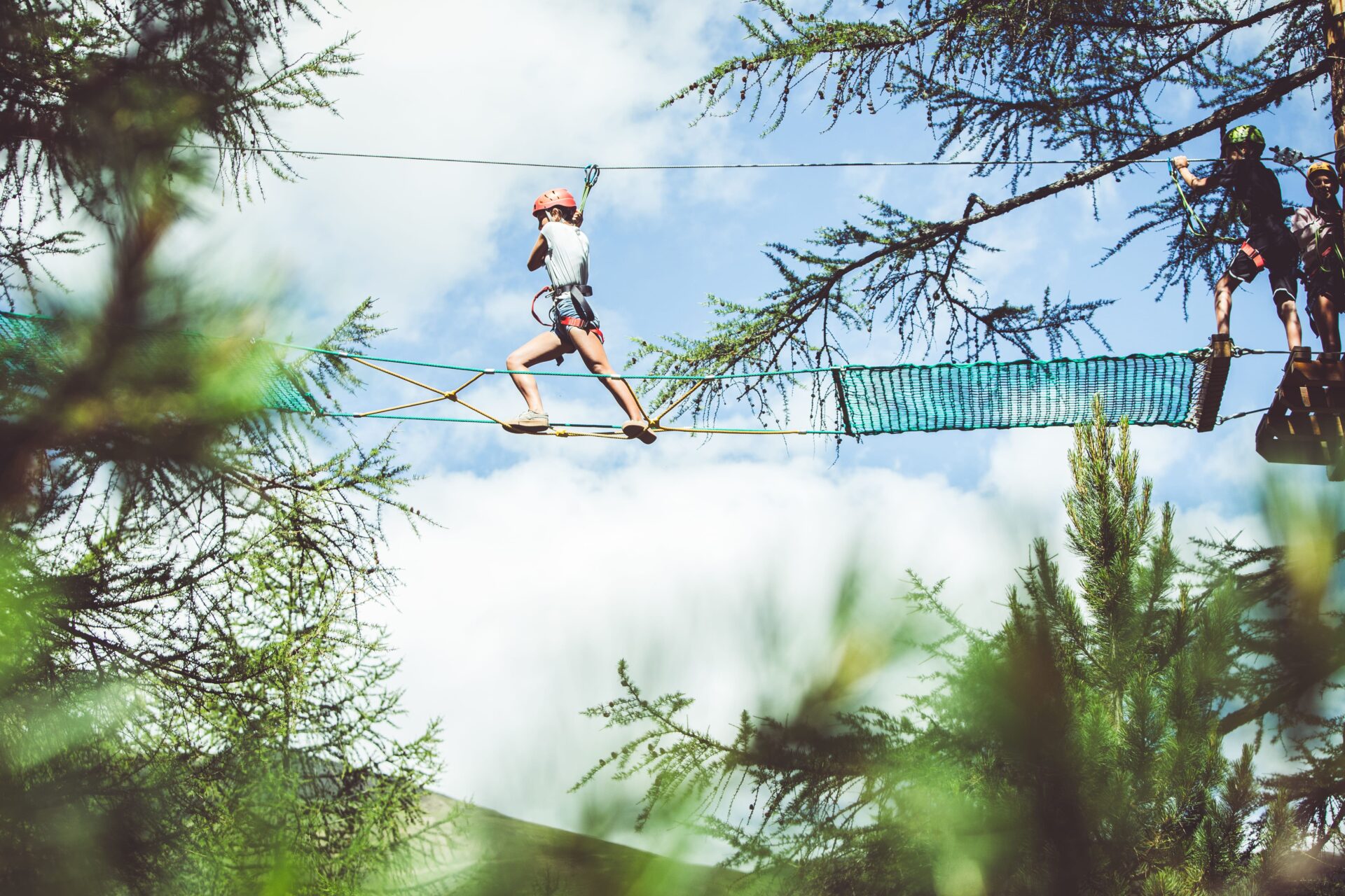 La Valtellina ospita diversi parchi avventura distribuiti tra boschi di larici e zone boschive, perfetti per chi vuole affrontare percorsi sospesi o vivere momenti di adrenalina in un ambiente sicuro.