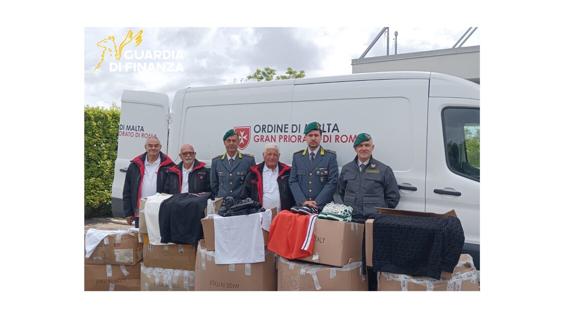 La Guardia di Finanza di Caserta dona abbigliamento sequestrato a Sovrano Militare Ordine di Malta e Caritas di Alife-Caiazzo, sostenendo persone in difficoltà attraverso la solidarietà e il riuso dei beni.