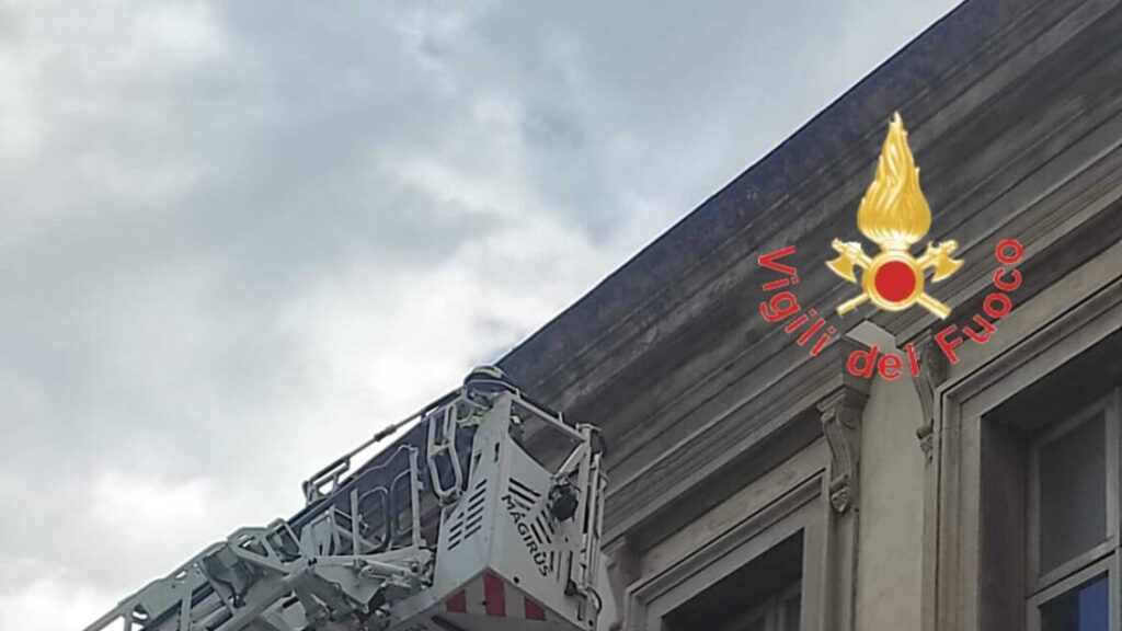 Emergenza a Catanzaro: Vigili del fuoco rimuovono cornicione pericolante da storico edificio