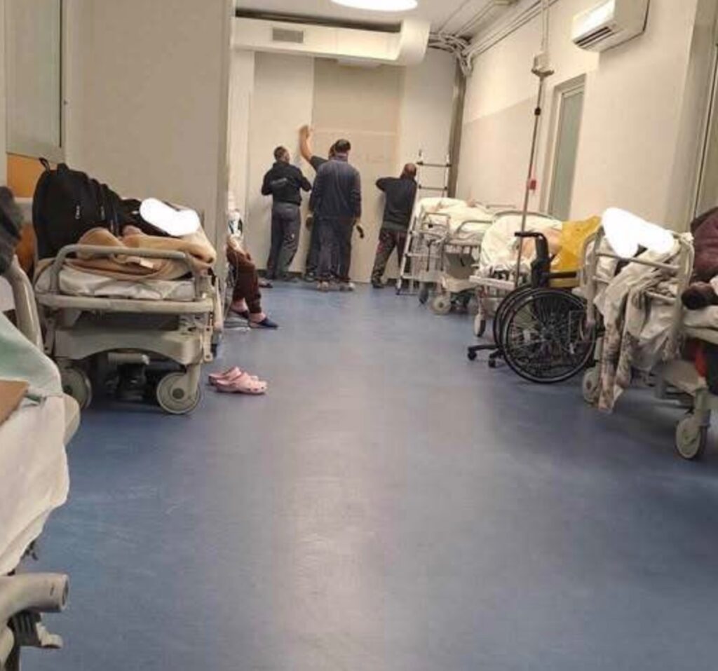 Corridoi dell’ospedale trasformati in reparti improvvisati