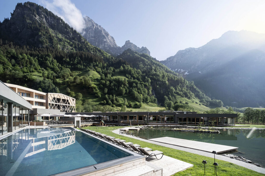 La piscina è progettata per integrarsi con l’ambiente circostante, offrendo anche una vista sulle montagne che circondano la valle di Fleres, ai piedi del monte Tribulaun. Questo spazio aiuta a vivere l’estate con un’opzione di svago all’aperto che si coniuga con i valori del resort, che punta al contatto diretto con la natura e a un’atmosfera accogliente e rigenerante.