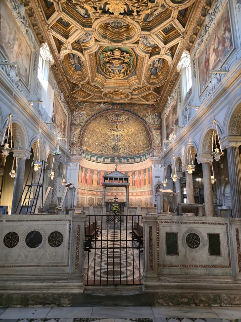 La basilica stessa si presenta come una stratificazione storica, con tracce che risalgono ai primi secoli dopo Cristo. Il mosaico, inoltre, rappresenta una testimonianza delle trasformazioni artistiche tra il paganesimo e l’era cristiana, caratterizzata da una simbologia ricca e complessa. Attraverso questo momento di approfondimento, la classe ha potuto non solo osservare ma anche riflettere sul legame tra arte, fede e storia in una città come Roma.
