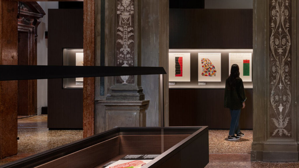 La sede veneziana di Ca’ Corner della Regina ospita la mostra fino al 24 novembre 2025. Al piano terra, cinque grandi grafici anticipano i contenuti più ampi esposti nel salone centrale e nelle sale laterali del primo piano. Il percorso non segue un ordine cronologico tradizionale, ma organizza materiali diversi in un dialogo continuo tra documenti rari, pubblicazioni storiche, immagini digitali e video.