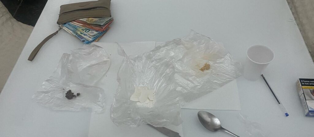 All’interno della casa, i Carabinieri hanno effettuato un importante ritrovamento. Sulla tavola della cucina, hanno trovato oltre 44 grammi di sostanze stupefacenti, tra cui cocaina, eroina e crack, opportunamente suddivisi in involucri pronti per la vendita. Inoltre, è emerso un bilancino di precisione, segno dell’attività di spaccio, insieme a 645 euro in contante, suddivisi in banconote di piccolo taglio. Anche appunti con cifre e nomi confermavano la gestione dell’operazione di vendita. La quantità e il tipo di sostanze rinvenute hanno chiaramente ricondotto l’appartamento a una base logistica per attività illecite.