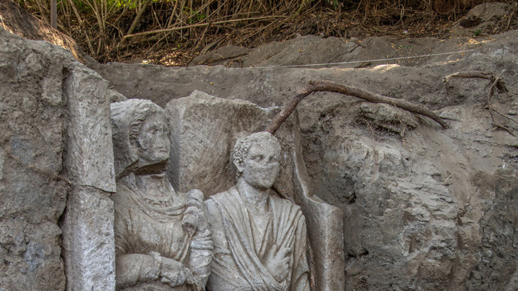 Scoperta straordinaria a Pompei: un rilievo funebre di una coppia affiora dalla necropoli