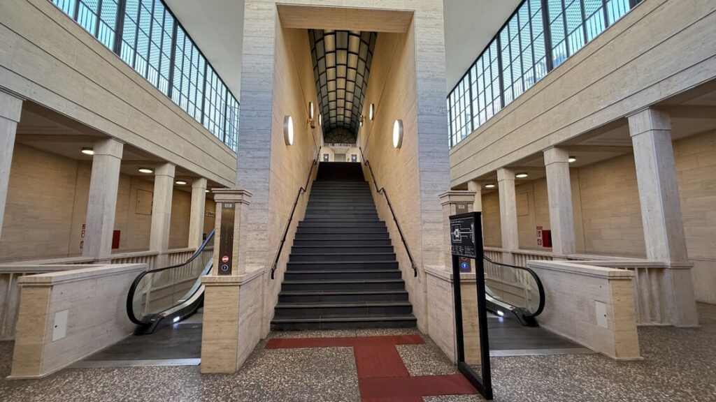 Un altro tema di rilevanza sarà l’uso innovativo dei materiali, con particolare riferimento alla scelta di acciaio e vetro per la costruzione del padiglione d’ingresso. Questi materiali non solo garantiscono funzionalità e durata, ma creano anche un dialogo visivo con il contesto paesaggistico e architettonico. La stazione presenta un’articolazione complessa, con cinque livelli e banchine collocate a circa 26 metri di profondità, rappresentando un esempio emblematico di ingegneria moderna.