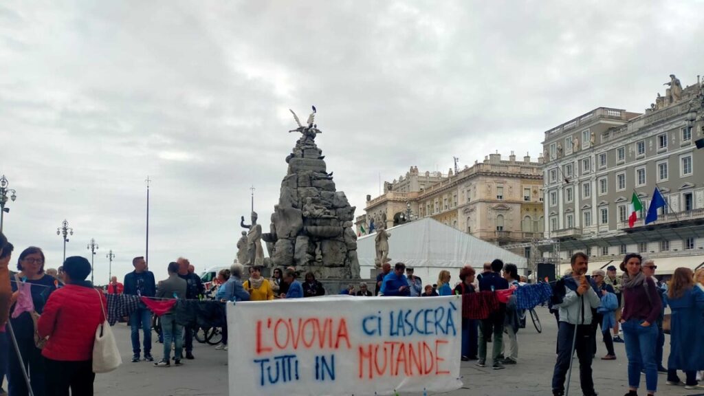 La protesta del comitato no ovovia davanti al municipio di trieste